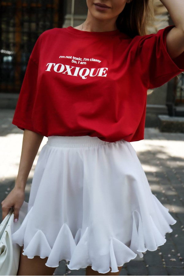 Футболка червона Toxique - стильний надпис та оверсайз крій
