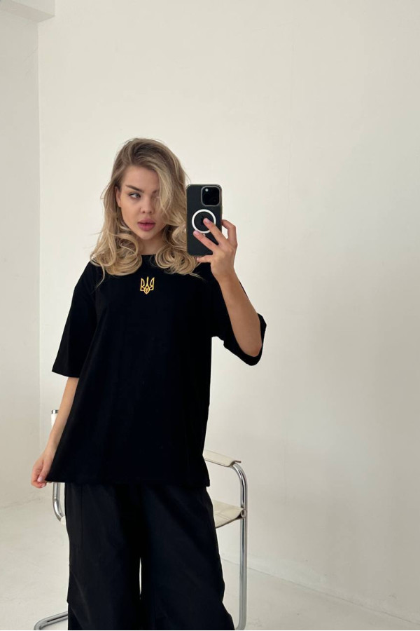 Футболка з вишивкою патріотична чорна