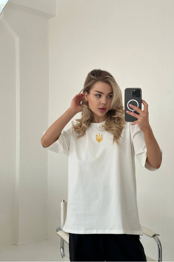 Футболка з вишивкою патріотична молочна