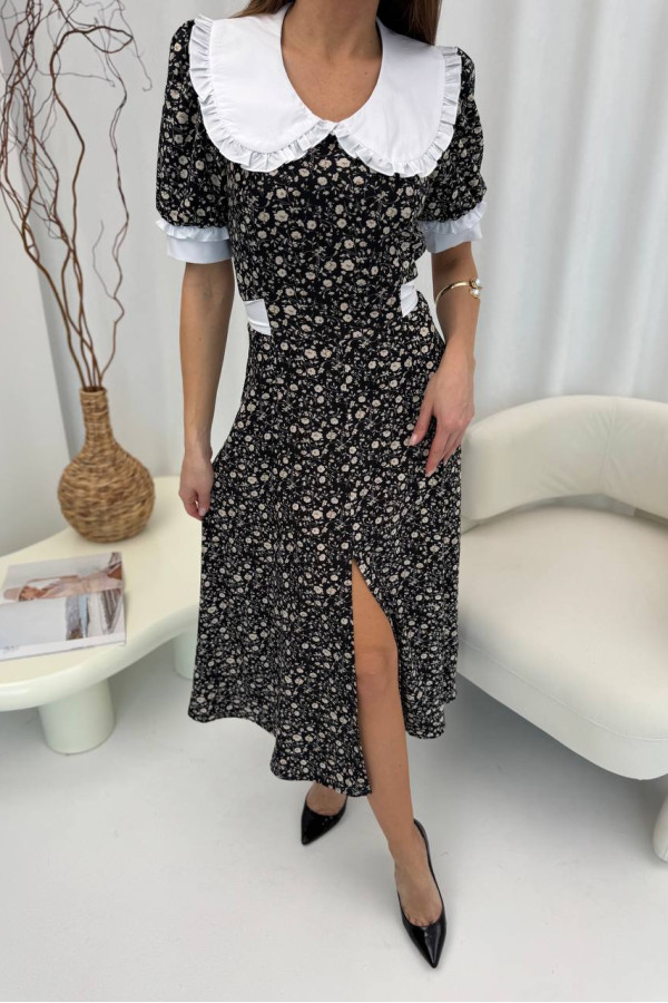 Легка  сукня в квітковий принт з рукавами воланами та воротом