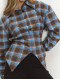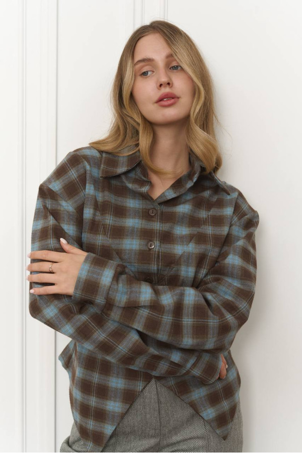 Сорочка клітинка з імітацією корсета блакитно-шоколадна